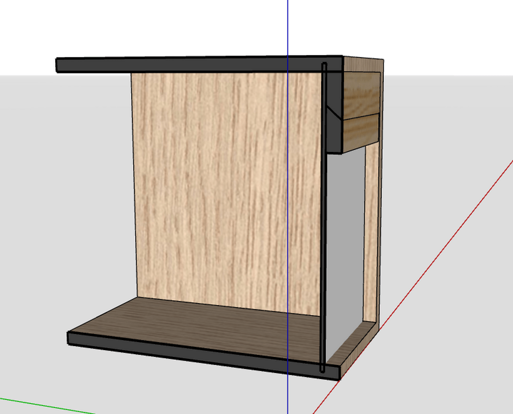 Taquet français pour la fixation au mur. Permet le réglage en largeur facilement. Dos en rainure faite à la scie circulaire si t'as pas de défonceuse.
