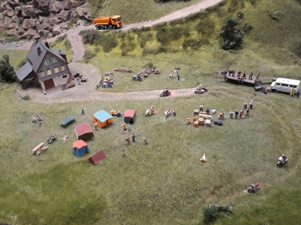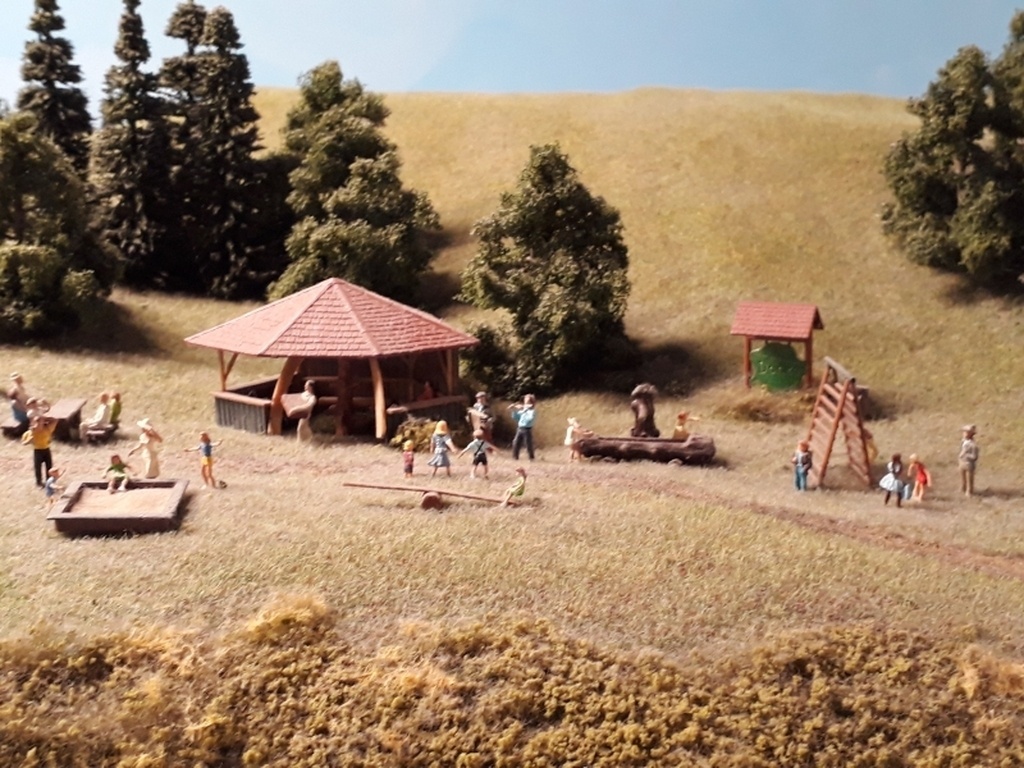 Eh bien moi cet après-midi, accompagné par deux éminents membres de L'Air du Bois au joli accent québécois, nous sommes allés en Allemagne dans un patelin de la Forêt Noire, visiter le magasin d'usine Faller (décors de modélistes), et dans un autre patelin revoir le diorama géant Schwarzwald modellbahn, avec ses trains miniatures et surtout ses dizaines de scènes de vie.