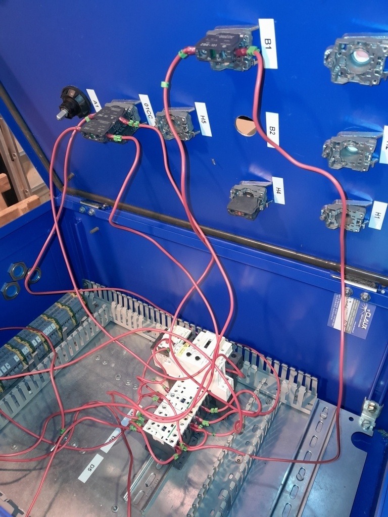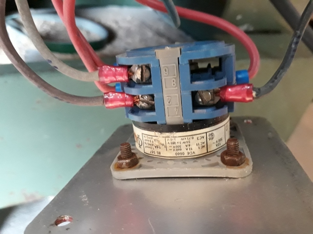 Il y a autre chose que j'aimerais faire... c'est avoir un voyant (ou 3, un par phase) qui prouve que le contacteur KM10 (ou KM1) est ouvert. Je ne jure que par la coupure visible, donc actuellement quand je change la courroie, systématiquement je débranche la prise tri. Je sais qu'il existe des interrupteurs sectionneurs, mais je veux voir avec mes yeux que c'est ouvert.