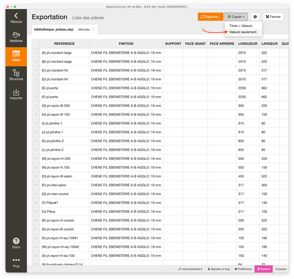 Ok, étonnant alors. Et autre question, quelle version d'OpenCutList utilises-tu ? (C'est écrit en haut de la fenêtre, mais on le le voit pas sur ta capture.)
