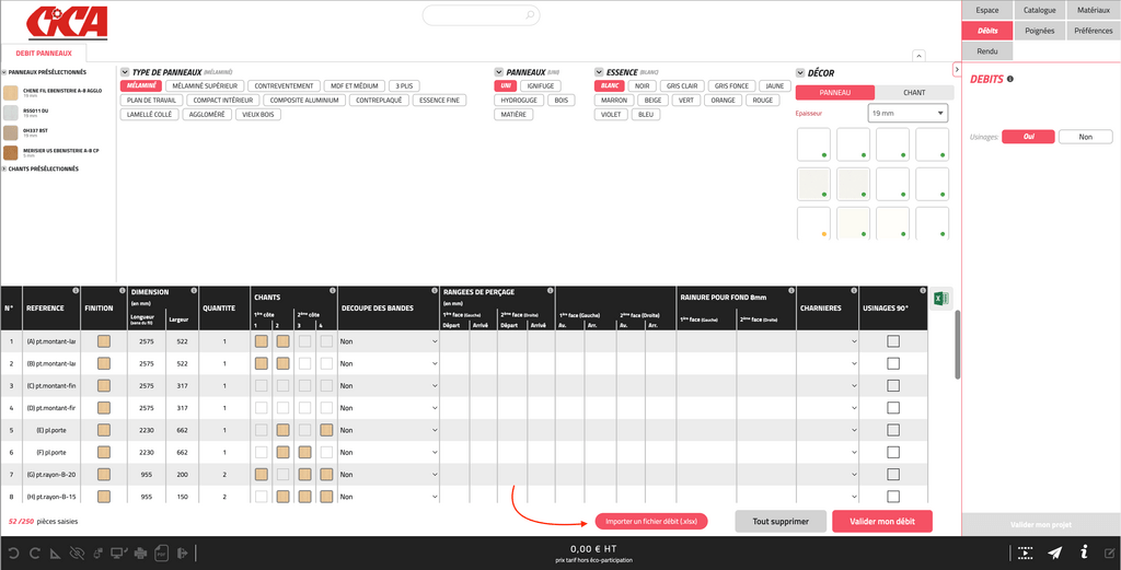 En effet, pour les panneaux, il faudra compter ça en feuille ... donc faire passer la moulinette du calepinage. Alors que tu le bois massif, il faudra multiplier par au moins 2 pour être réaliste.