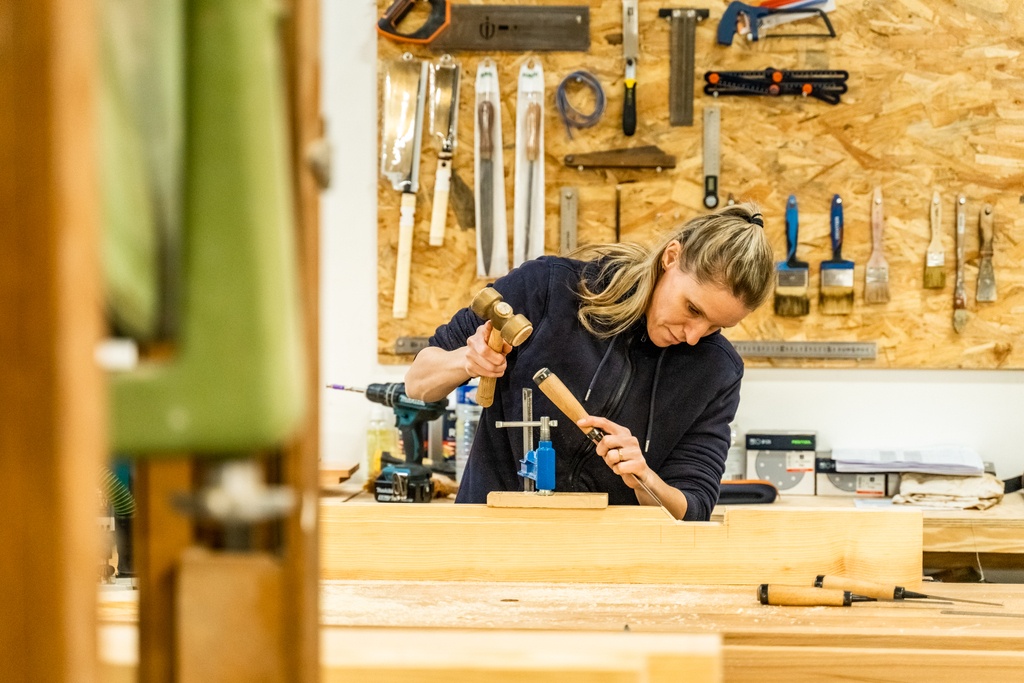 Formée à l’École Supérieure d’Ébénisterie d’Avignon à travers un cursus intensif de dix mois (diplôme de niveau baccalauréat), j’ai créé mon entreprise en 2021. J’ai d’abord travaillé en atelier partagé, une expérience qui m’a permis d’affiner mes techniques, de développer mes projets et de construire mon identité artisanale.