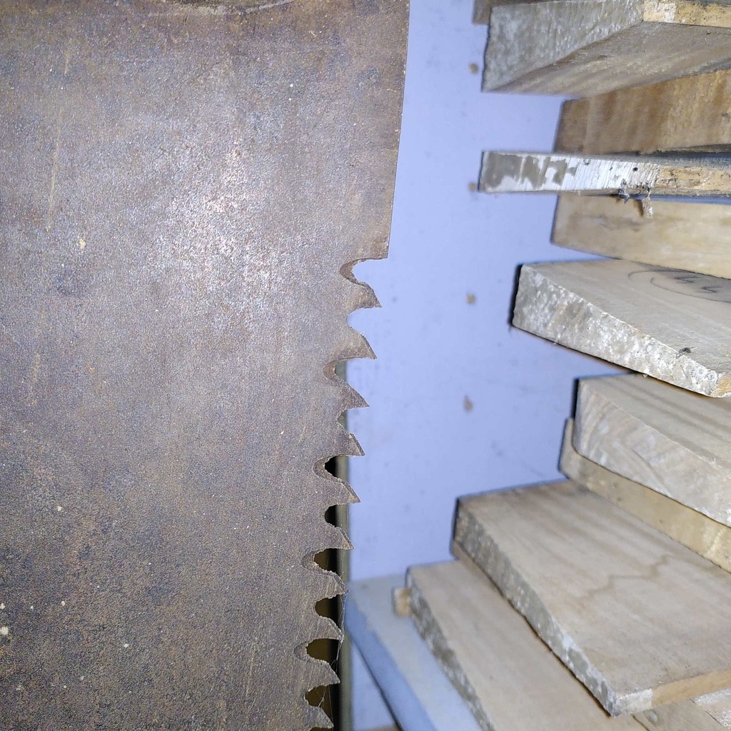 J'ai corroyé mes massifs, puis ai levé (refendu en plusieurs fois) les épaisseurs de placage en 4mm à la scie à ruban, sur 130 mm de largeur.