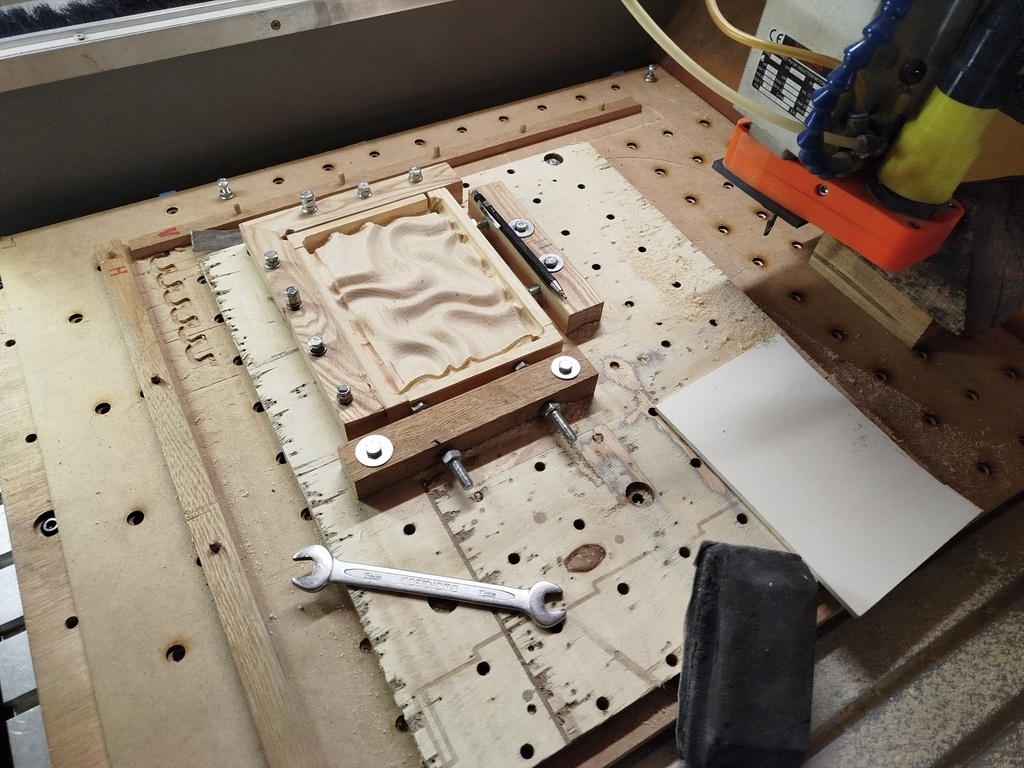 Par contre, pour les gouttes, il y a eu du ponçage manuel dans les angles. Je ne suis pas descenbdu en dessous du diamètre 6 car c'était déjà 1h37 d'ébauche et 3h28 pour 500x360x21 mm.