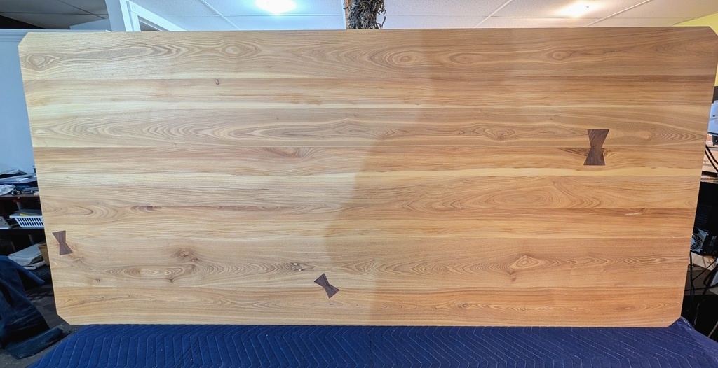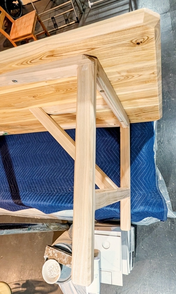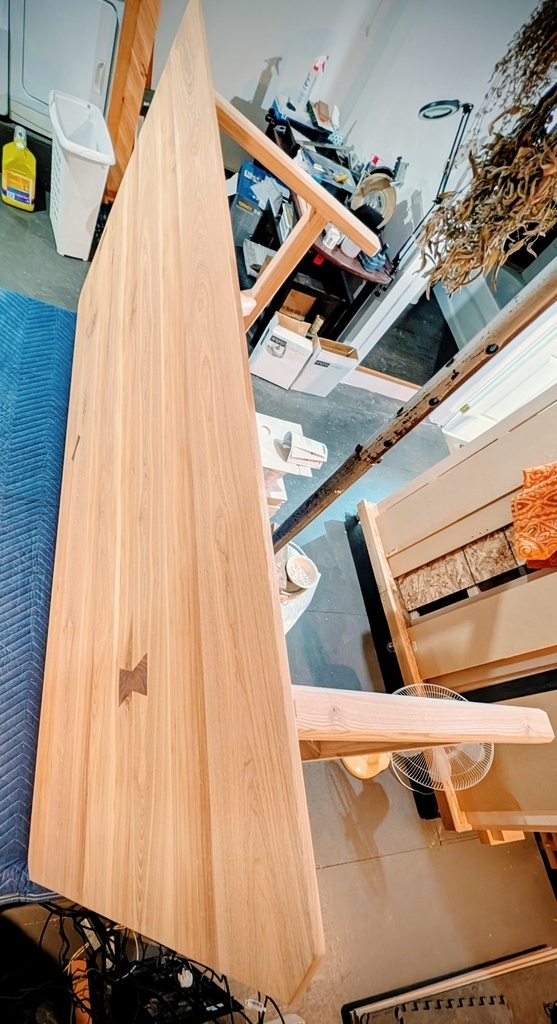 Oui, on voit la table du dessous. L'assemblage sera avec des vis et des insert dans le dessus pour que le tout soit démontable. J'ai peur qu'avec le temps, les vis travaillent. Je pensais donc réduire les épaisseurs (par dessus et par dessous selon les support) pour obtenir la même épaisseur de chaque côté et ne pas trop faire forcer le tout.