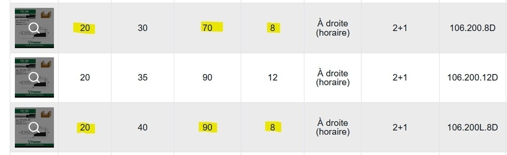 Là, j'ai pris des diamètres de 8, mais il y a aussi des 12, dans le même tableau