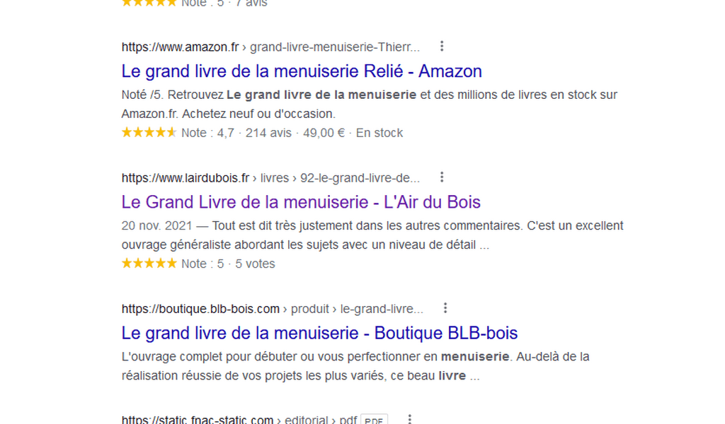 c'est une question plus générale, si tu regardes dans les livres les étoiles ADB apparaissent aussi sur google mais pas a droite comme avec les fournisseurs, plutot comme éditeur ou revendeur