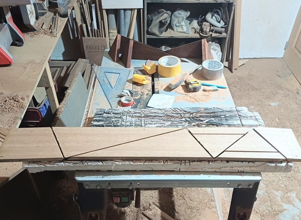 J'ai optimisé les découpes, y a 7 coupes pour obtenir deux étagères, un record !