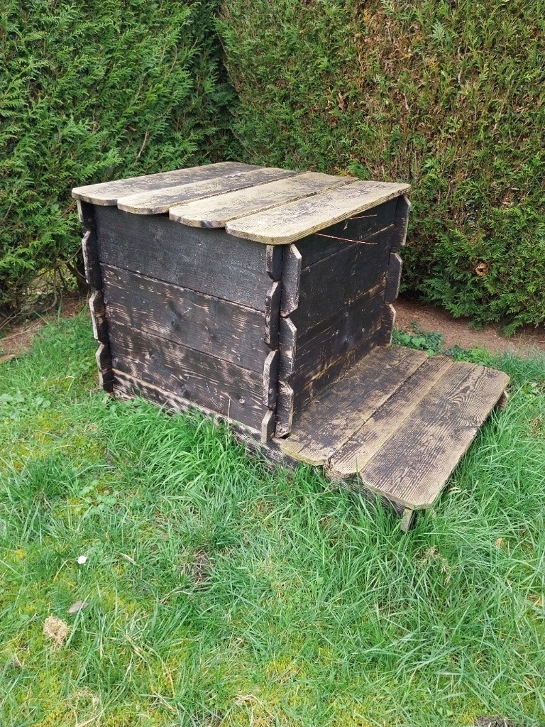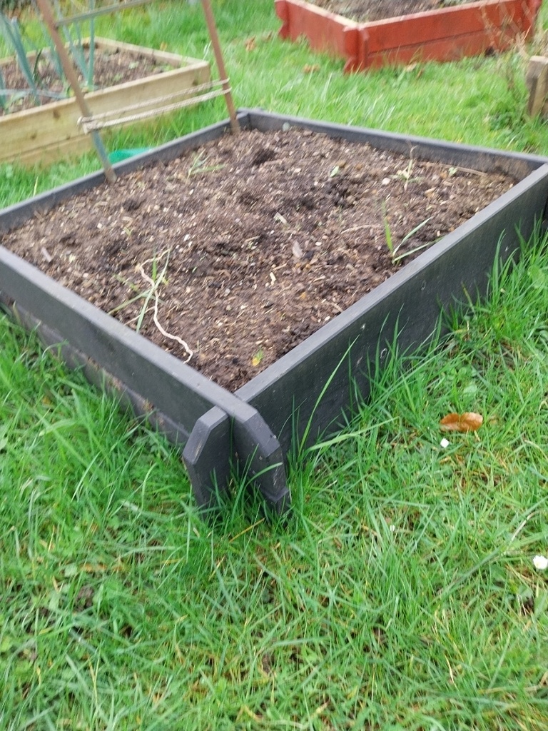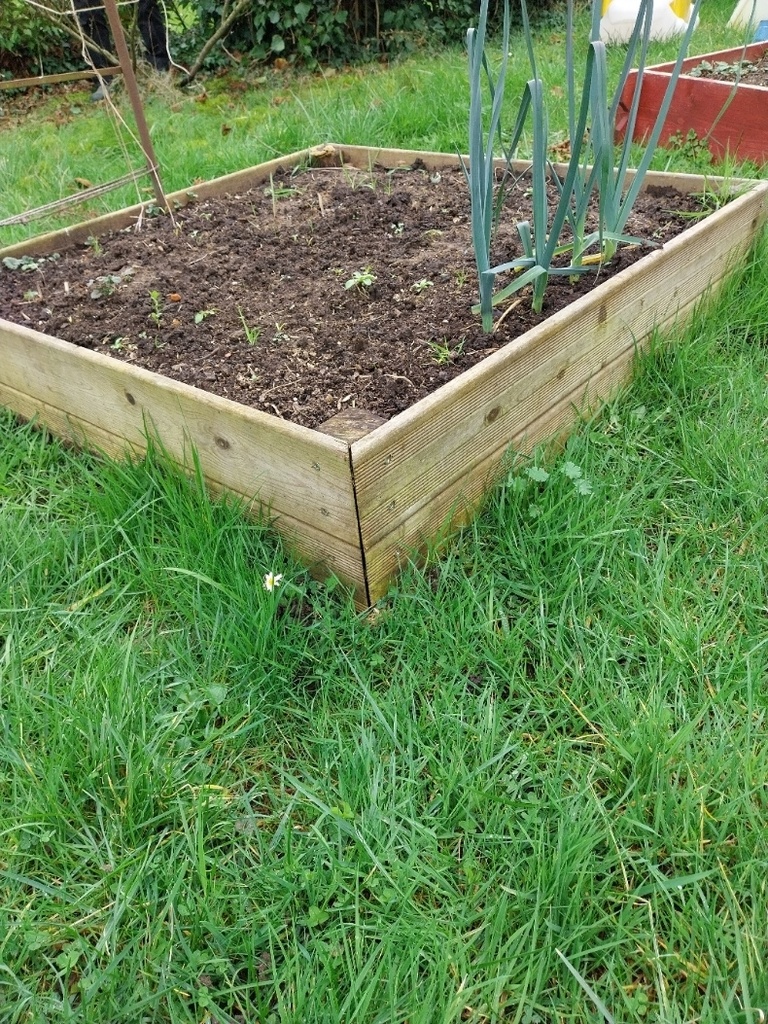Je ne vous avais pas présenté le carré N°00 avec les restes de lames de terrasse. Il est dans le jardin depuis 2 ans, aucun traitement.