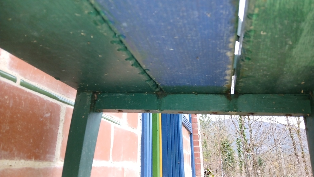 Oui elles sont encastrés et vissées pour être démontable car ils pourrait y avoir un jour un passage de gros engin (ce n'est pas large) et vu que la fixation sur ITE ( isolation par l'exterieur) est fragile en 30mn je peux la démonter.De plus si l'engin hypothétique accrochait l'angle de la marquise elle est conçue avec des vis courtes qui devraient s'arracher des parties ( montant en bois) fixés eux solidement dans le mur (surtout les 2 horizontales) ( cella ferrait fusible).C'est pour cela aussi qu'il y a une charnière noire de chaque côtés. Et ces contraintes rendent " les assemblages douloureux" comme le dit au dessous Morgan.