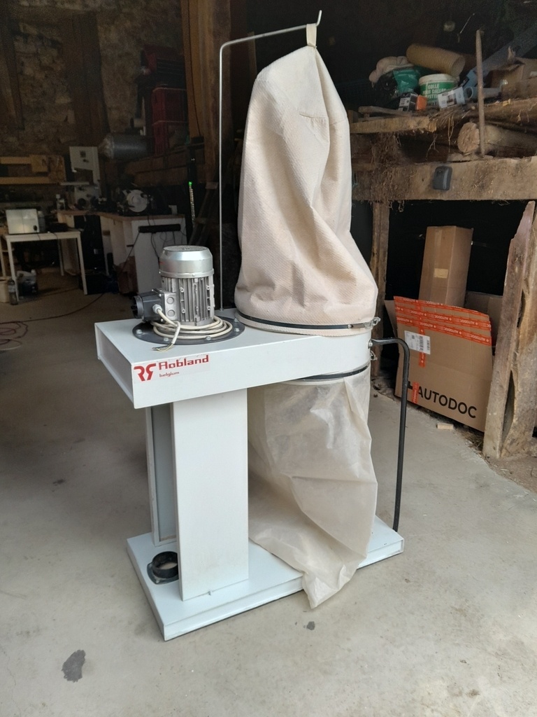 Je vends un aspirateur à copeaux Robland D1500 triphasé en bon état.