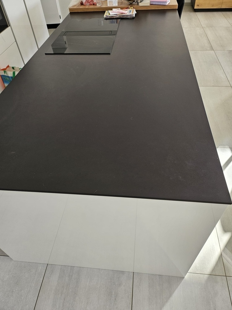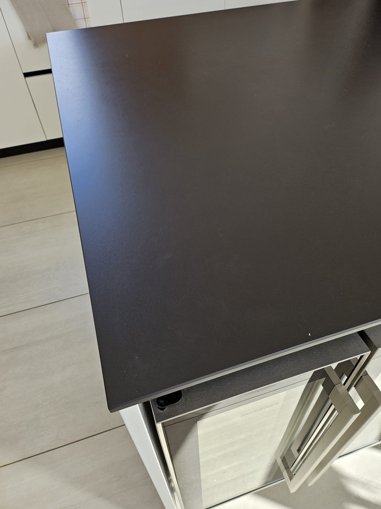La table sera en chêne, mais après réflexion avec mon client je vais tenter de lui proposer un disque en Dekton 12 mm qui s'accordera avec sa cuisine, juste a coté.