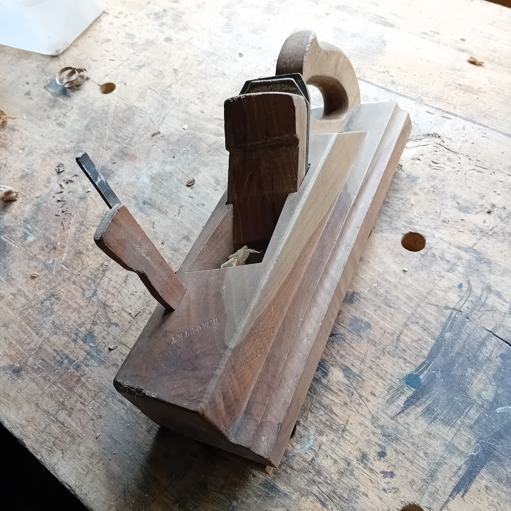 vends ce magnifique guillaume en bois de cormier, bois sain sur quartier. Pas de marque apparente d'outilleur, seulement le nom du menuisier utilisateur.