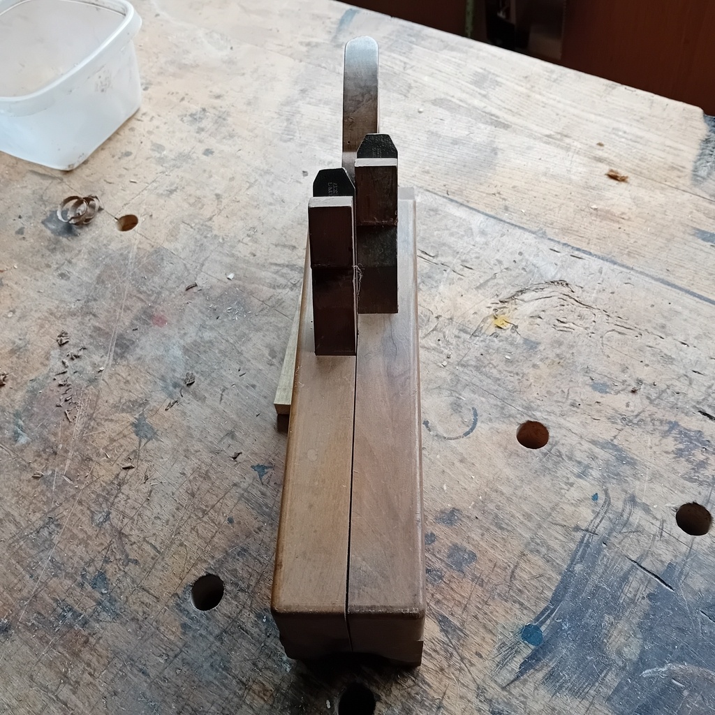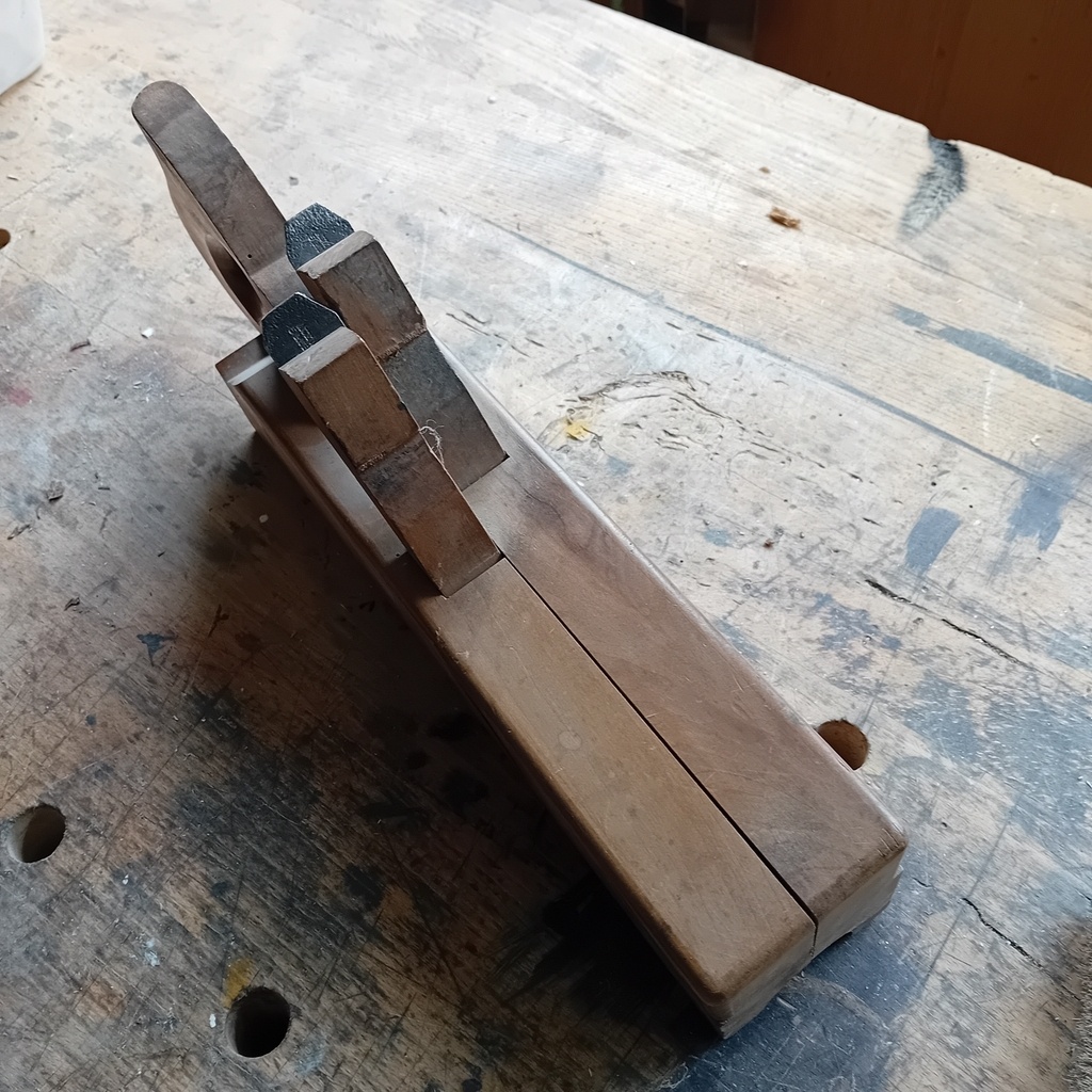 Bel outil de bonne taille et d'inertie intéressante. Pour amoureux du travail à la main. fers affutés et outil nettoyé. les bois ne sont pas décollés mais assemblés par vissage.