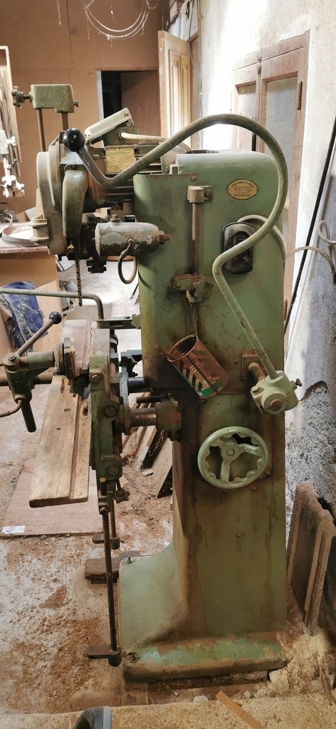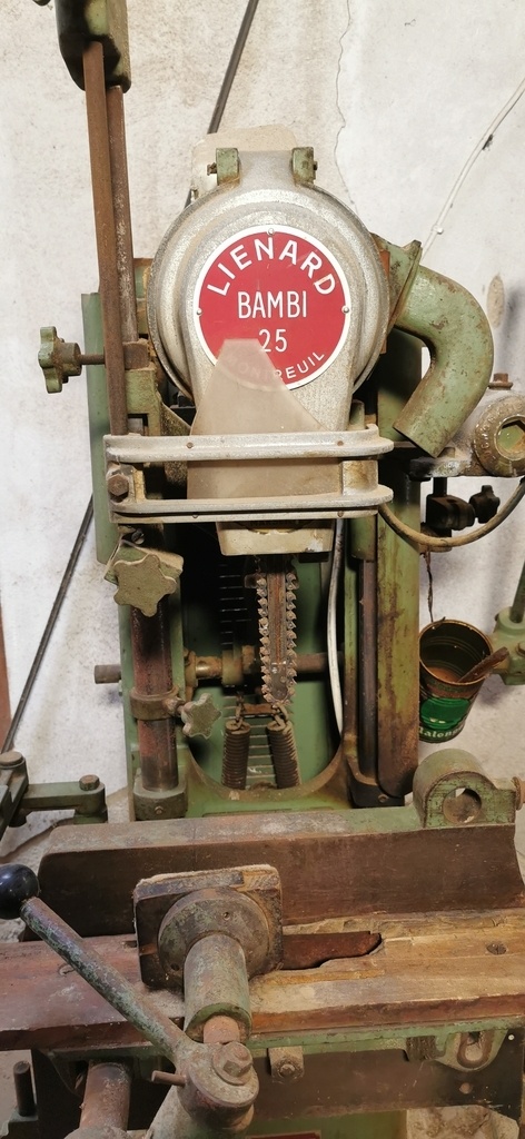 - Marque / modèle : tête de mortaiseuse à chaîne LIENARD BAMBI 25 montée sur bâti de menuiserie BOYER (Marseille)