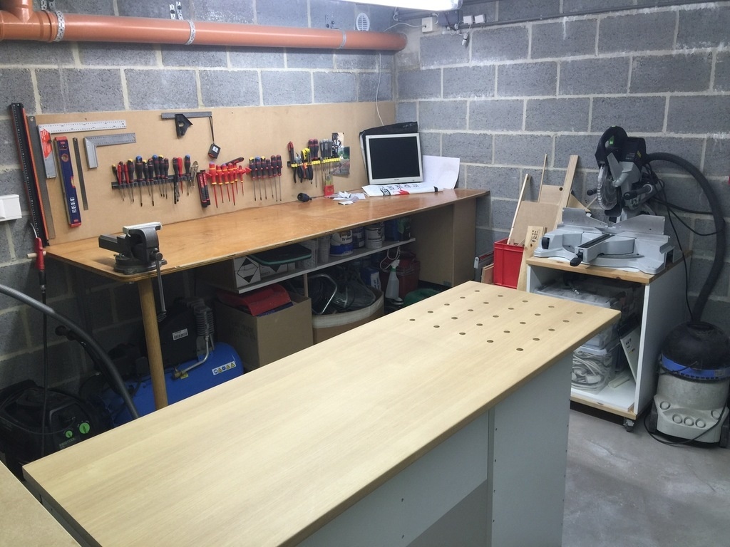 Quelques photos de l'évolution de l'atelier. La réalisation de l'établi principalement.