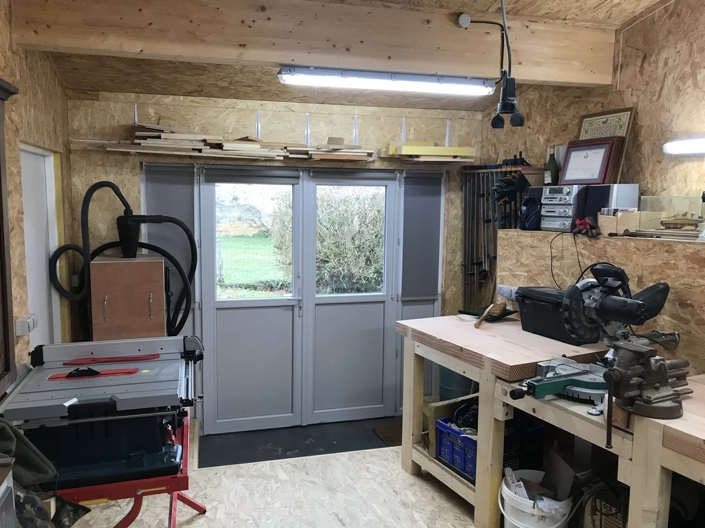 Il s'agit d'un ancien garage, que j'ai isolé et habillé avec des panneaux d'OSB, le sol aussi pour rattraper la pente.