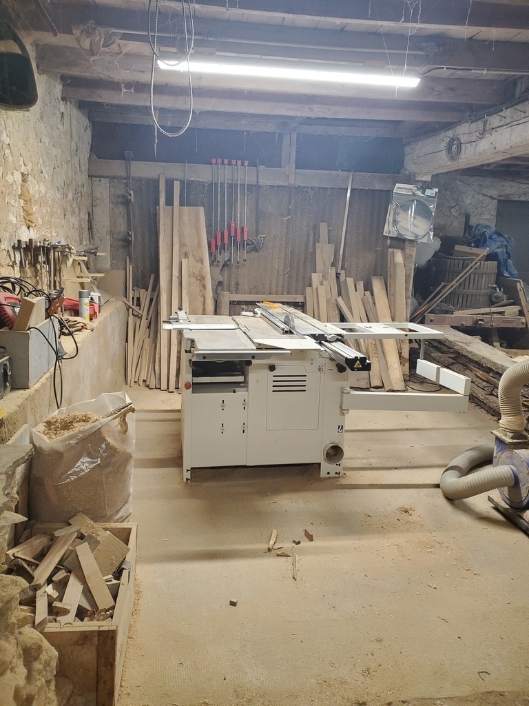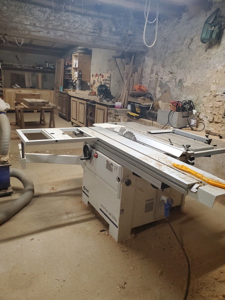 Bonjour à tousJ'ai racheté les granges de mes grand-parents pour installer mes machines à bois.Combiné scm minimax lab 300pScie a ruban record power sabre-450Défonceuse sous table triton TRA001
