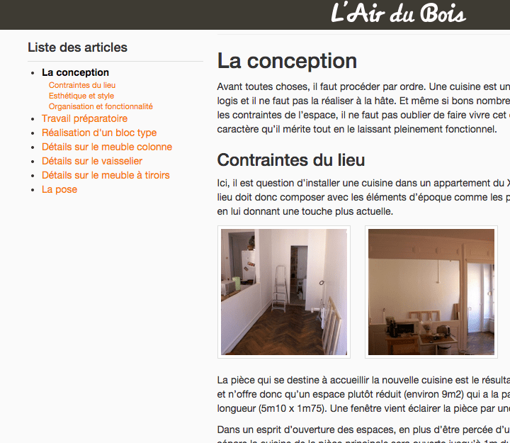 Suivant l'élan du contributeur, le pas à pas peut être plus ou moins long. Du coup, pour garder une vue globale de la position de lecture dans la page, une table des matières donnée par la liste des articles restera présente sur la gauche de l'écran.
