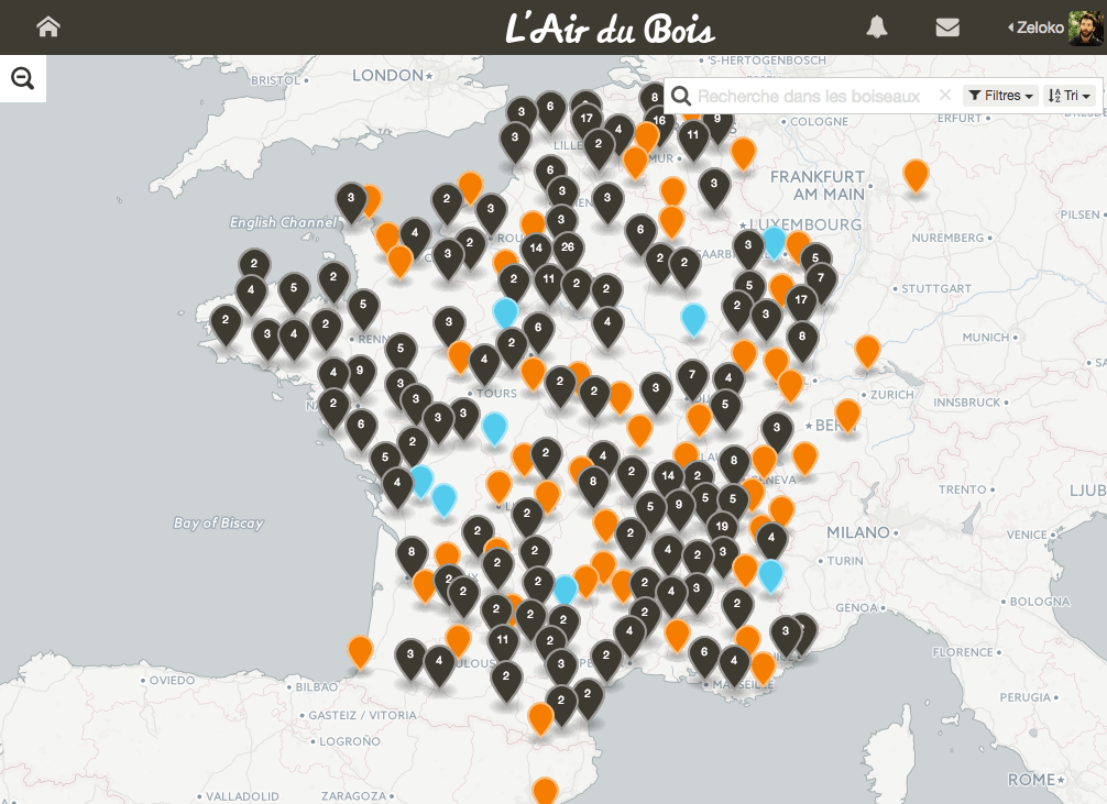 Oui, c'est Leaflet que j'ai mis en place sur la page des boiseux. Mais avec la version légèrement modifiée par Mapbox (l'initiateur du projet Leaflet bosse chez Mapbox) et des fonds de cartes CartoDB.