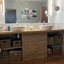 Collection de meubles sous vasque de salle de bains, en bois, avec des pieds (non suspendu), et des portes ou des tiroirs, mais en tout cas, plutôt fermés.