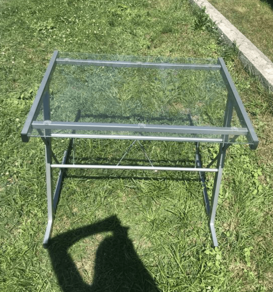 Recyclage d'un bureau, avec un plateau en verre semblable a la photo 2,j'ai oublié de prendre le bureau avant modifs...