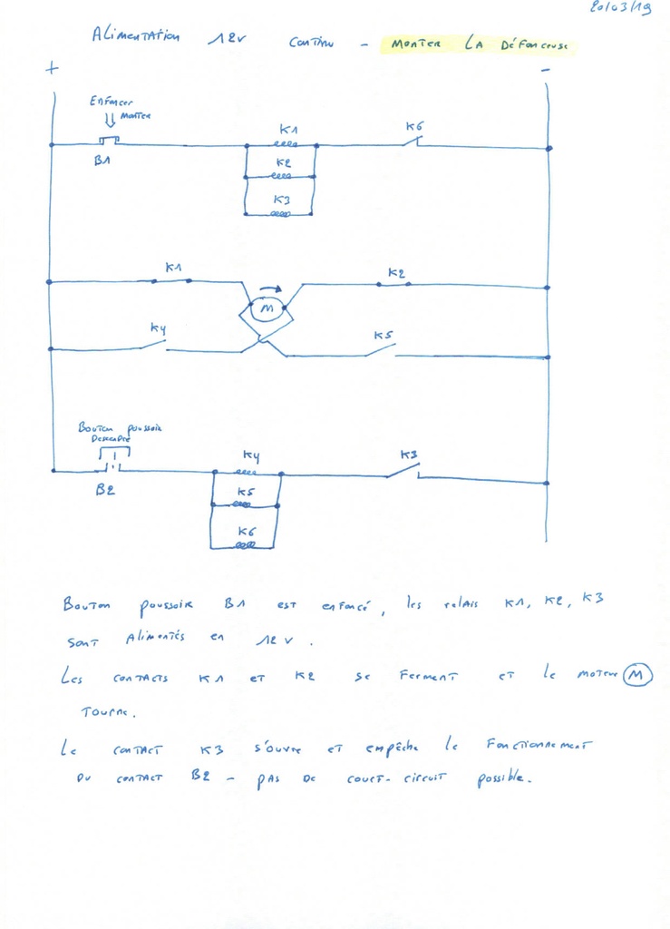 Voici les schémas électrique de raccordement du moteur 12v permettant la montée et la descente de la défonceuse.