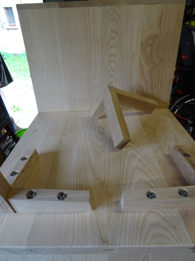 Les plateaux de ce projet sont en frêne de 17mm et 27mm mais provenant de divers arbres. La désignation est -->Frêne dépareillé et bien pour faire des projets en frêne ou l'on souhaite avoir un fil continu ou des pièces présentant la même teinte il faut essayer d'avoir des plateaux qui viennent du même arbre, surtout pour le frêne ou l'on peu tomber sur des planches rouge, et on s'en aperçois au rabotage