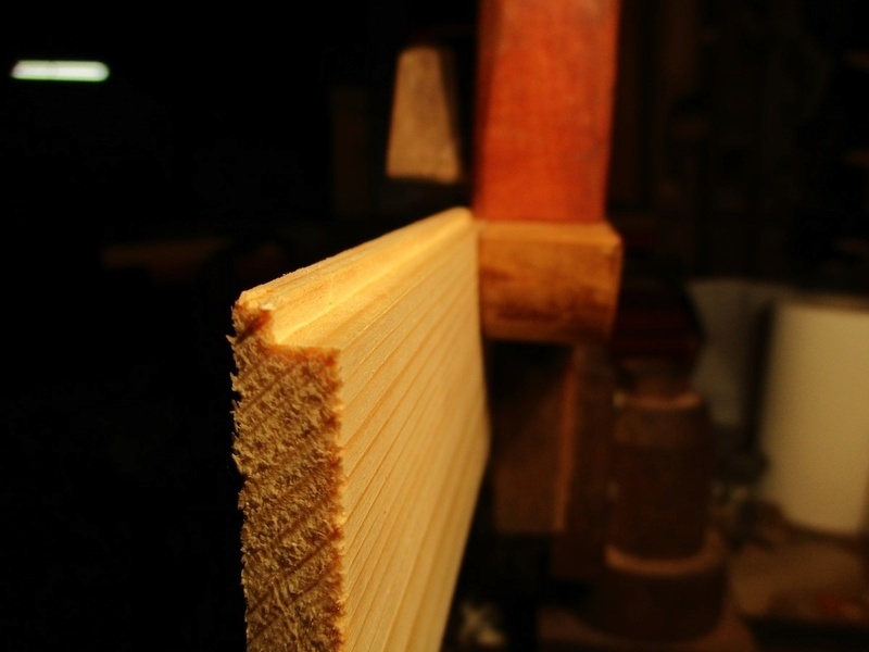 Notez le fer en biais, pour limiter l'arrachement des fibres en bois de travers.