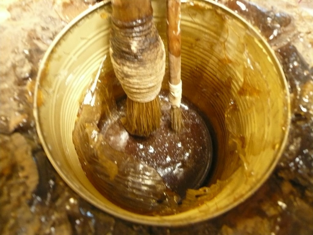 Pour utiliser cette colle ,il faut utiliser des pinceaux à ficelle ( voir photo)