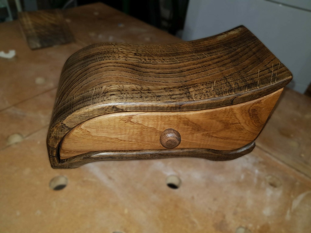 - Une scie à ruban laisse des vagues sur le bois, surtout dans les courbes (et il n'y a que des courbes sur cette boite)
