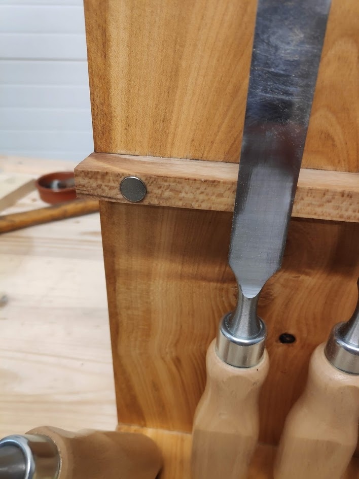 En aillant mare de voir mes ciseaux à bois trainer sur l'établis, je me suis décidé à me fabriqué un support pour les poser.