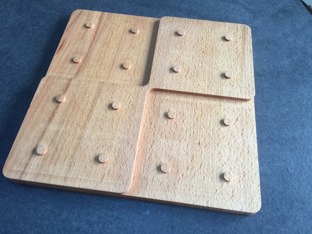 du coup après petite adaptation / re-dessin via Aspire / Découpe CNC et ponçage finition ! Hop une petite série de 4 jeux pour différentes personnes de la famille. :D