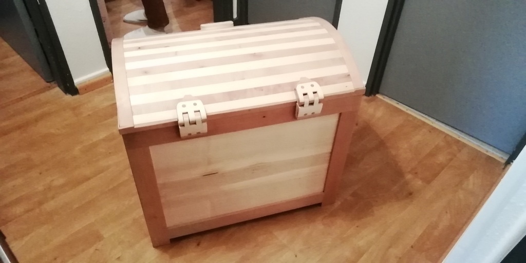 Très chouette le coffre et charnieres bois c'est la classe. T'as fixé comment les lattes du couvercle sur Le bords ?