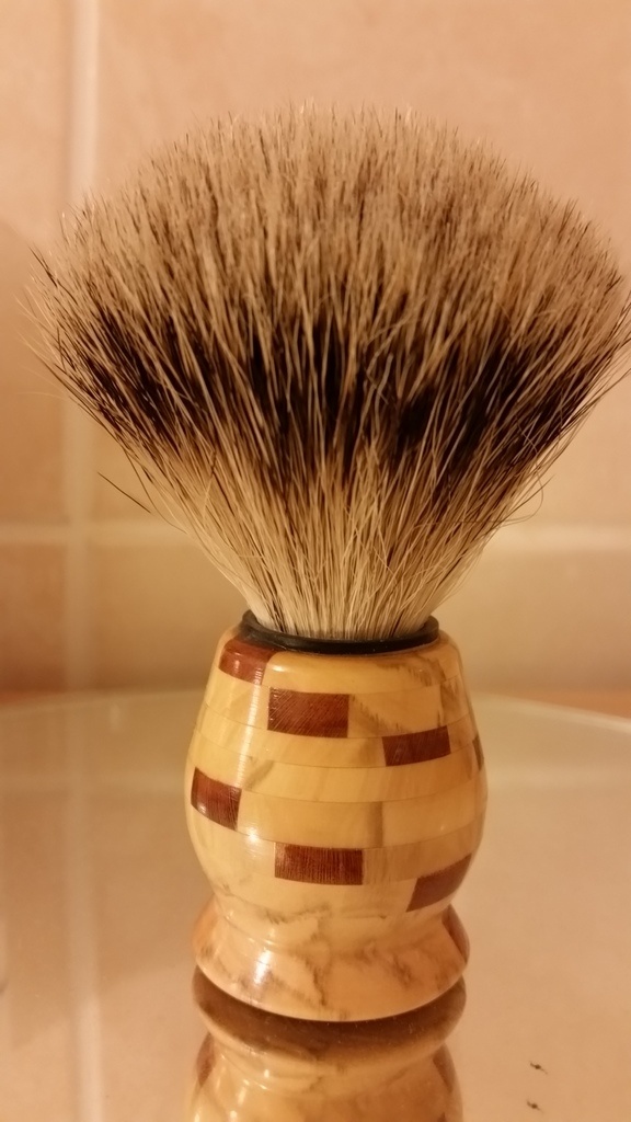 voici une réalisation d'il y a quelques années.blaireau en tournage segmenté et chasse rasoir ancien rénovée en buis