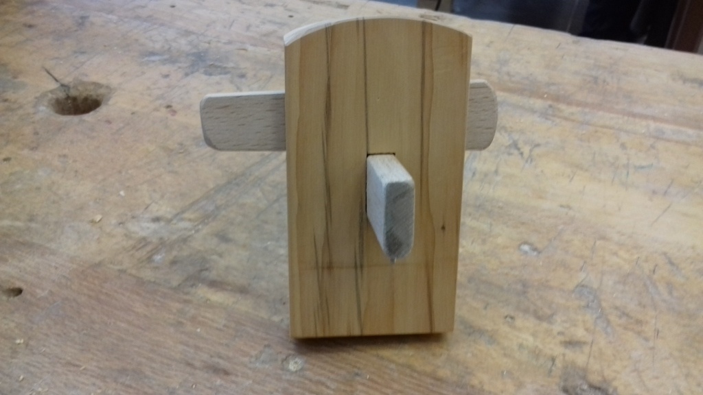 Les mortaises sont réalisées avec la domino et écarris avec le ciseau. Une vis 3x30 au bout que j'ai meulé pour que la pointe soit tranchante et le tour est joué.