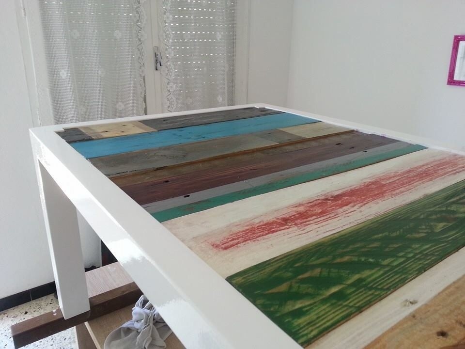 fab83 merci,c'est 8 différentes couches de peinture,ce table toujours tirer du public, nous avons aussi un modèle en palette naturel :