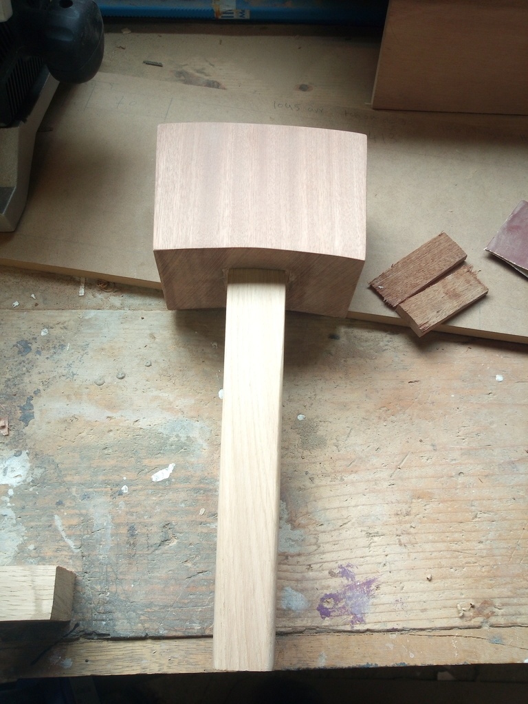 Belle réalisation ! Par contre il risque de casser rapidement puisque le fil est dans le mauvais sens, il faut du bois de bout sur les faces avec lesquelles on frappe pour éviter que le maillet ne se fende facilement...