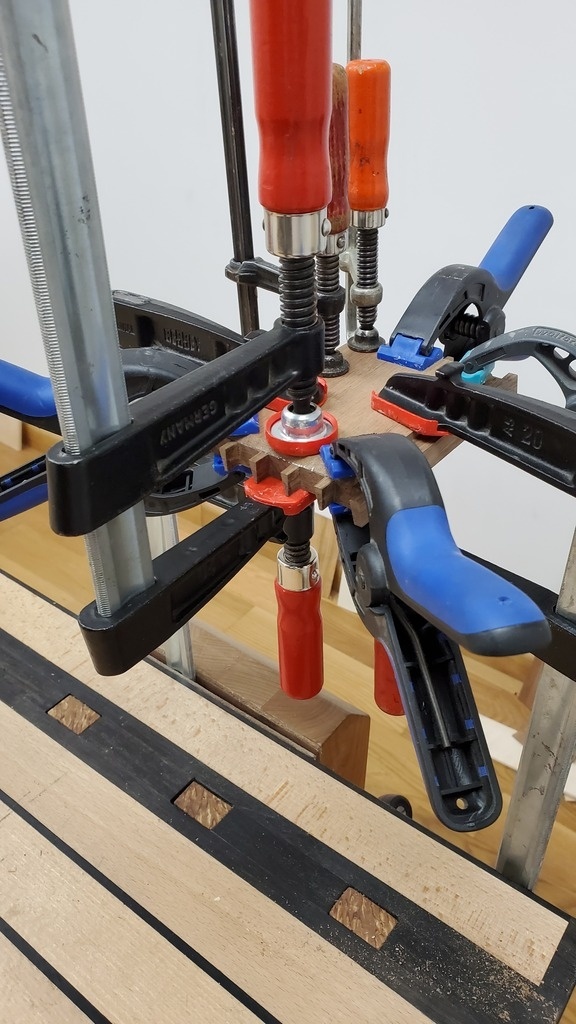 J'ai dû confectionner deux gabarits d'angles, lesquels, posés sur ma planche à recaler m'ont permis de calibrer mes morceaux de bois.