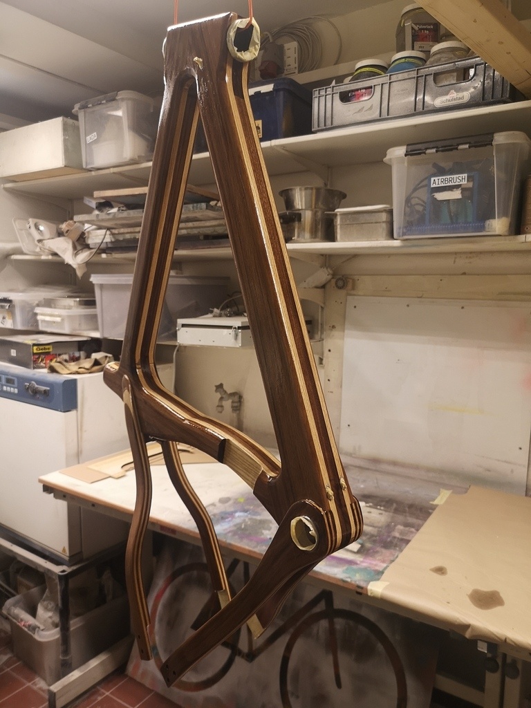 Comment j'en suis arrivé à cette idée ? Bon au départ j'avais prévu de faire un vélo cargo, j'avais commandé les tubes, commencé à apprendre la brasure, puis j'ai déménagé en Suède et j'avais plus de poste à braser sous la main. La solution la plus simple était donc de faire un vélo en bois. Et comme j'ai pas la place dans l'appartement d'avoir un cargo, j'ai décidé de faire un cadre de route.