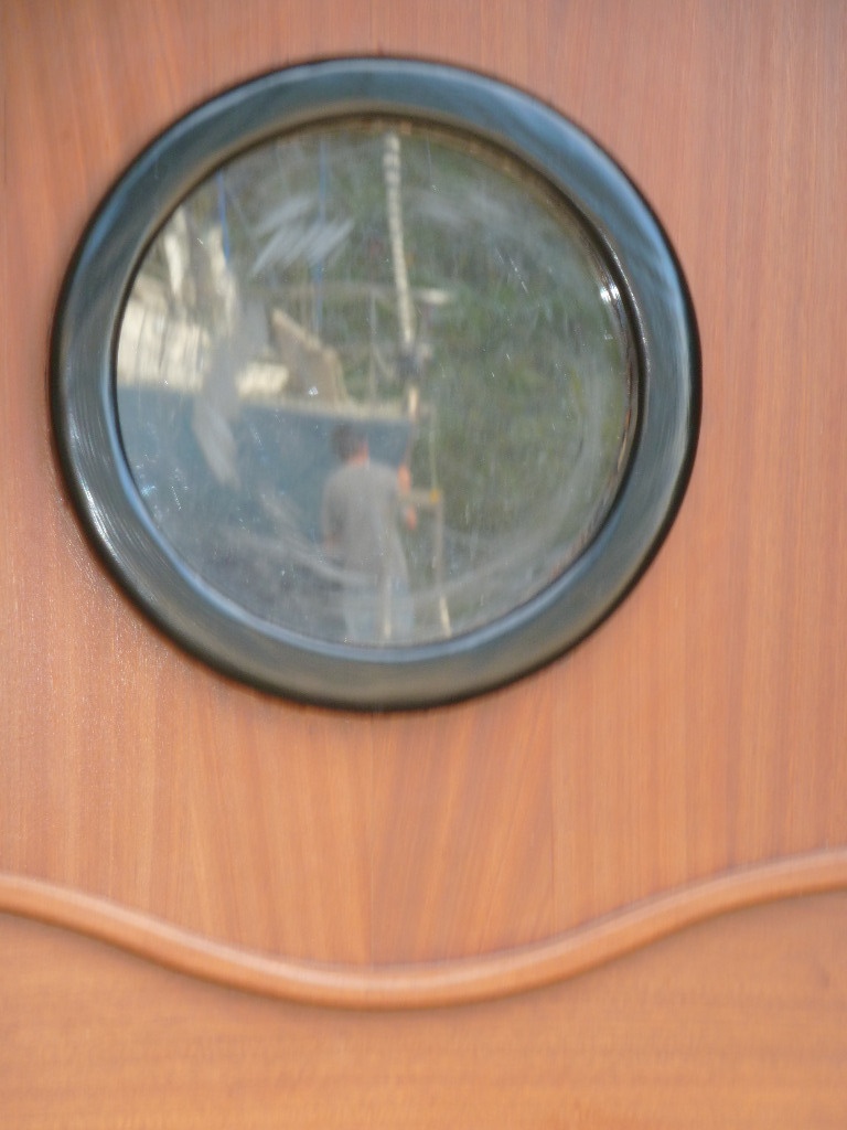 Très belle porte. Le hublot ne choc pas plus que ceux sur la coque des bateaux.
