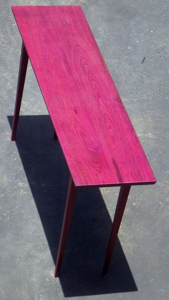 Console épurée en amarante et une lampe avec les chutes de découpe des pieds.