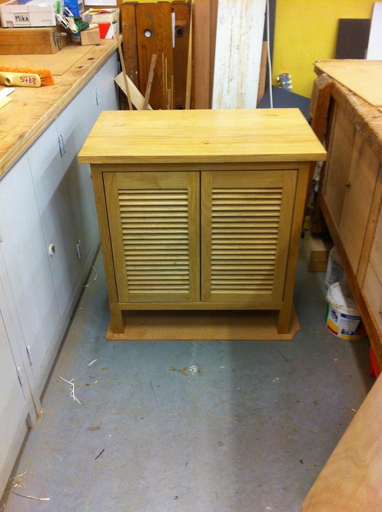 Ce meuble a été fabriqué avec du bois de récupération (ancien bureau d'écolier).