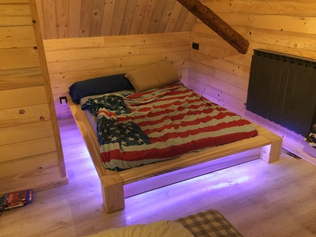 Rénovation complète de la chambre. Électricité, chauffage récupération du radiateur, remise en état, peinture, plomberie de chauffage cuivre soudée, fabrication du lambris en chablis, fabrication du lit, étagère, bureau en douglas et frène et c'est pas fini.... Meuble télé en cours et armoire + portes... C'est plus de l'aménagement que de la haute menuiserie, mais ça prends un paquet de temps...