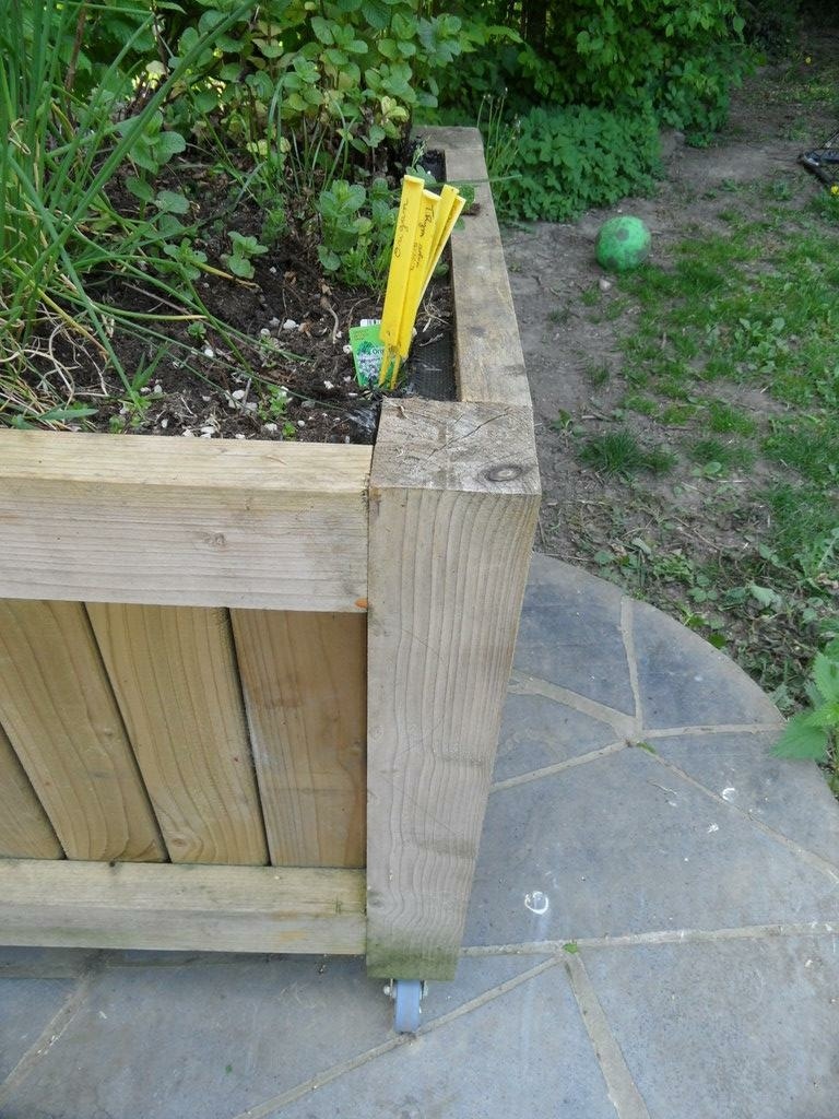 Le bois est un résineux traité par sels achetés tel quel (séparé du terreau par une bâche non étanche).