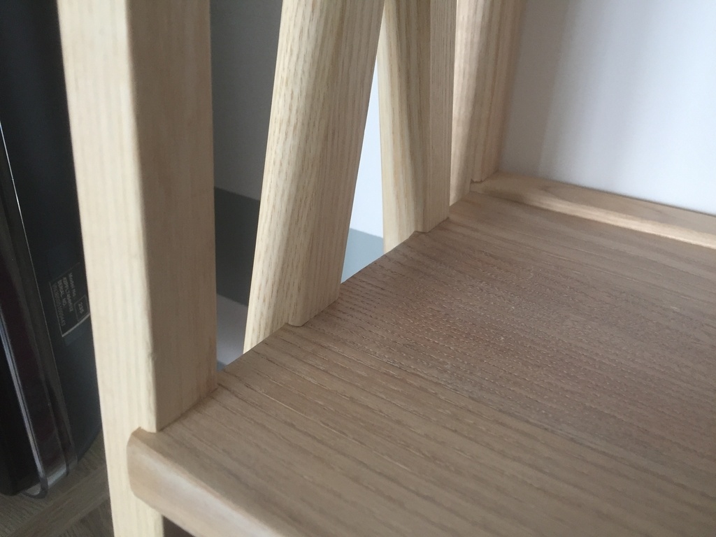 J'ai fouillé dans mon petit stock de bois pour en ressortir quelques belles planches de châtaignier qui ont servi pour les tablettes et du frêne pour la structure.