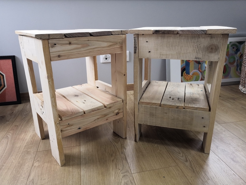 Tables de chevets réalisées à partir de palettes récupérées.