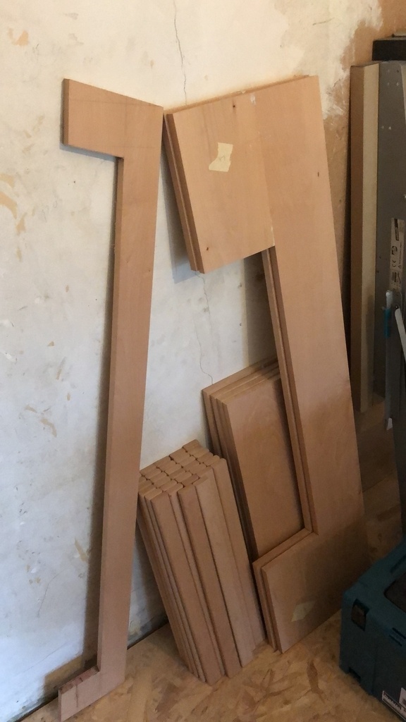 Vu que le bois est très beau, j'ai juste tout poncé et fais une finition a l'huile durcissante éclaircissante, pour essayer de garder au maximum les couleurs et les motifs du bois.