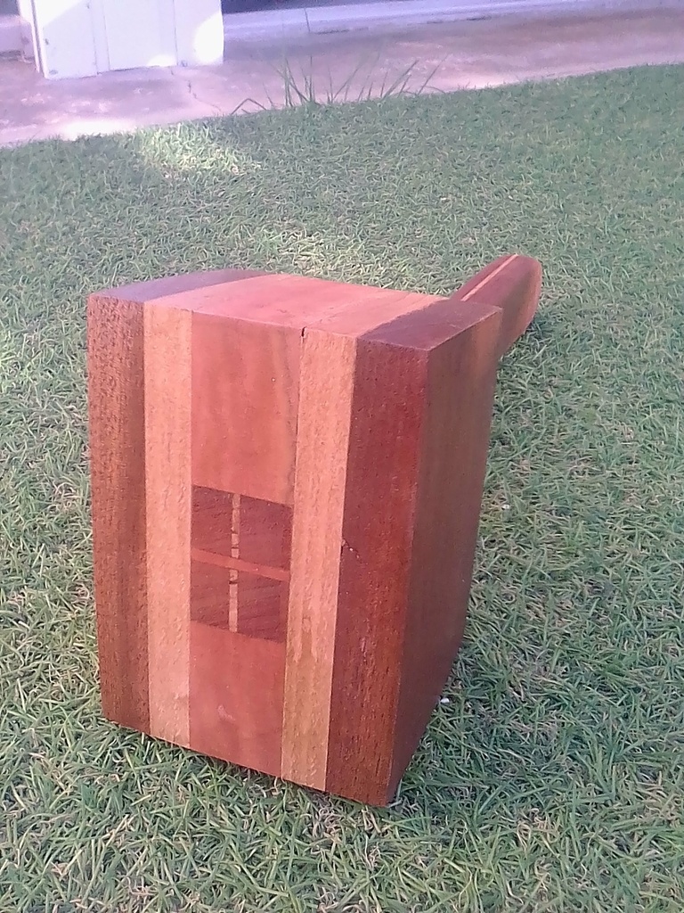 2eme teste de maillet avec plusieurs pièces a coller, en bois (exotique et autre) de récup.