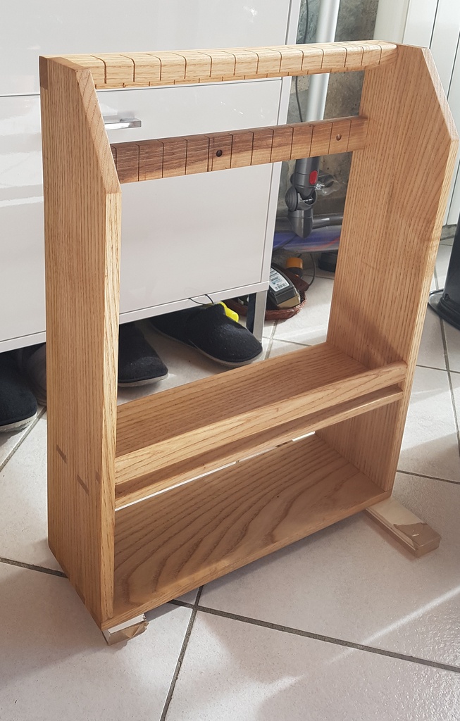 Réalisé pendant le confinement et n'ayant pas accès aux machines de l'atelier associatif dont je fais partie, ce meuble a été entièrement fabriqué avec des outils à main, corroyage compris, ce qui est une première pour moi.